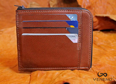 Billetera diseño minimalista con tarjetero exterior en ambos lados y cierre para guardar billetes